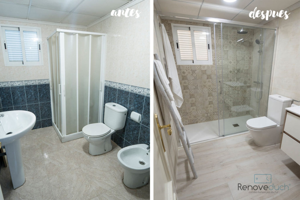 Ahora que ya conoces todas las ventajas que te ofrece esta opción, puedes cambiar la bañera por un plato de ducha o incluso la típica ducha vieja, antigua y resbaladiza por un plato de ducha antideslizante y amplio, acorde a tus necesidades actuales, como en el “antes y después” siguiente. Esperamos que el texto te haya resultado útil si estás interesado en reformas de baños.